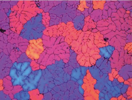 У литому стані; Дендрична структура; Анодоване у 0,5% розчині HBF4 протягом приблизно 2 хвилин при 20 В; З додаванням 0,01% TiB2 із використанням лігатури Al-3Ti-1B.