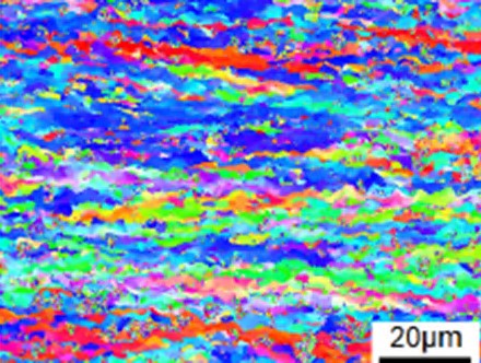 Гарячекатане; Зразок для випробувань після двох циклів процесу накопичувального з'єднання прокаткою.